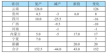 表2-2 2024年中國電解鋁復(fù)產(chǎn)產(chǎn)能變動情況(萬噸/年)