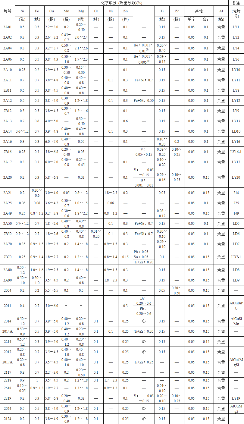 4-2XXX系列硬鋁應(yīng)用較為廣泛的牌號(hào):2024(2A12)、LY12、LY11、2A11、2A14(LD10)、2017、2A17等。