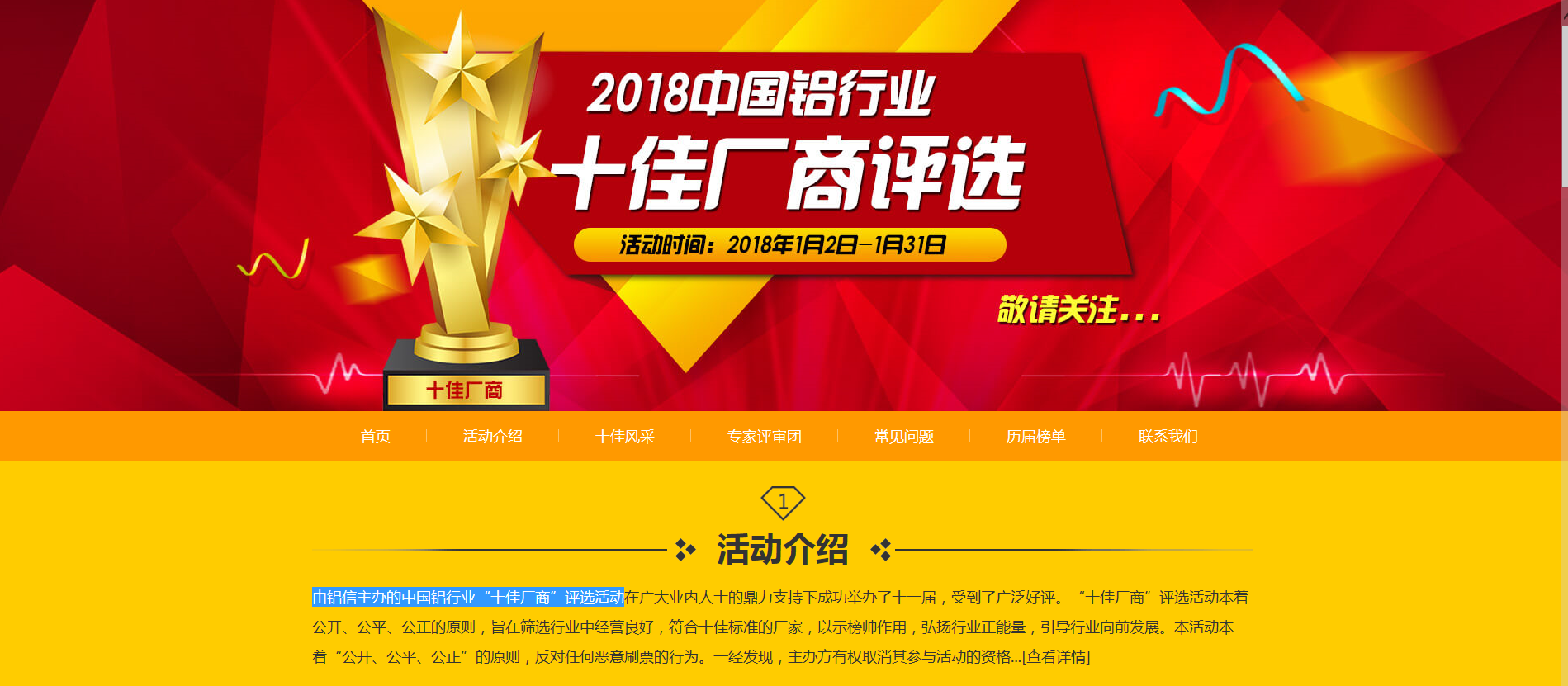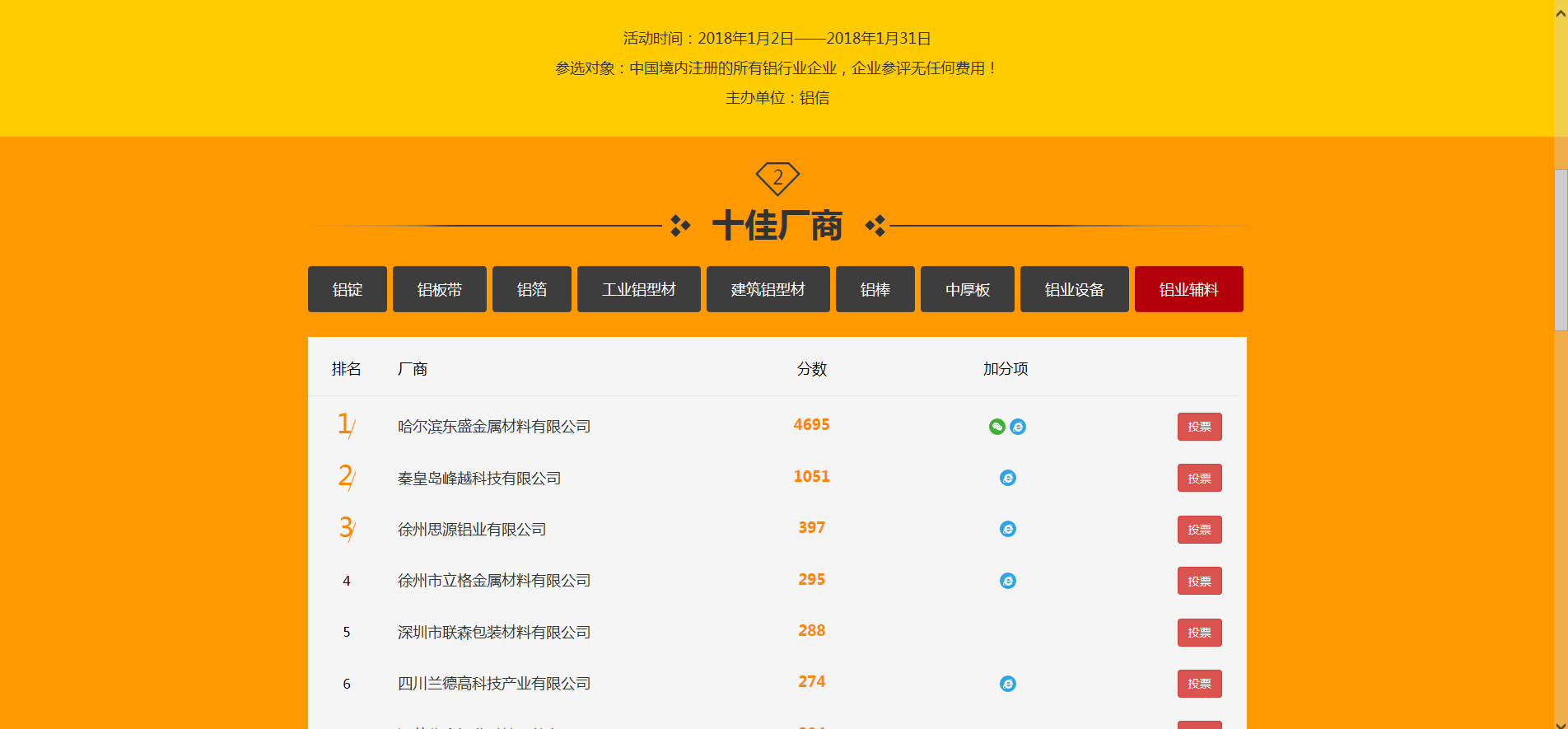 公司參加由鋁信主辦的中國鋁行業(yè)“十佳廠商”評選活動