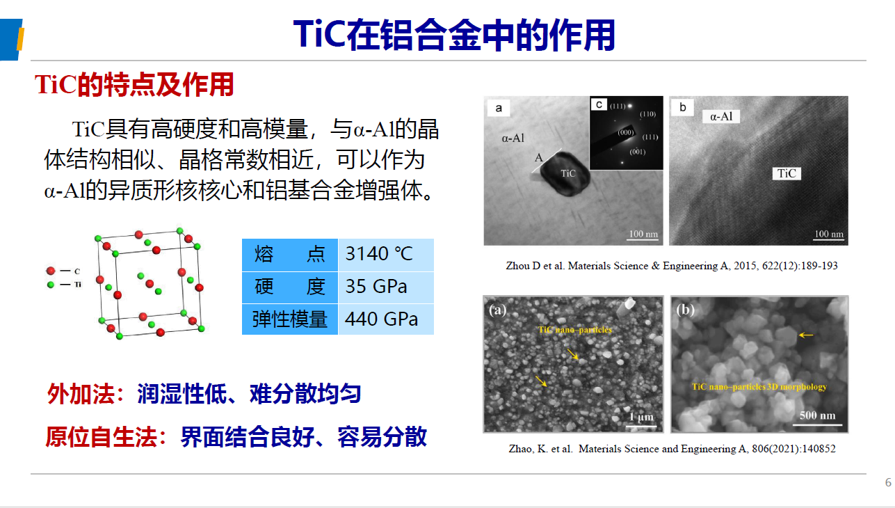 隨著新興的綠色鋁加工聚集區(qū)的建立,新的鋁加工熔鑄產(chǎn)能也隨著電解鋁產(chǎn)能的轉(zhuǎn)移而新興,整體鋁加工熔鑄產(chǎn)能持續(xù)擴(kuò)充,加劇了行業(yè)競爭的激烈程度,促動(dòng)了整個(gè)鋁加工行業(yè)產(chǎn)品及技術(shù)的加速升級(jí)和進(jìn)步。本次峰會(huì)北京航空航天大學(xué)云南創(chuàng)新研究院肖文龍博士發(fā)表了題為“Al-TiC(N) 多功能中間合金的制備及應(yīng)用”的報(bào)告,首次系統(tǒng)性的展示了鋁基TiC增強(qiáng)復(fù)合材料,通過晶粒細(xì)化、復(fù)合強(qiáng)化、組織優(yōu)化等途徑,對(duì)于鋁合金基體的常溫、高溫力學(xué)性能的大幅提升。作為公司的戰(zhàn)略儲(chǔ)備技術(shù),我司峰越科技已開始6%TiC含量鋁基碳化鈦顆粒增強(qiáng)材料的工業(yè)化批量生產(chǎn),并成功應(yīng)用于6xxx系合金的強(qiáng)化、2219合金強(qiáng)化、7034焊絲以及增材制造材料的生產(chǎn)。